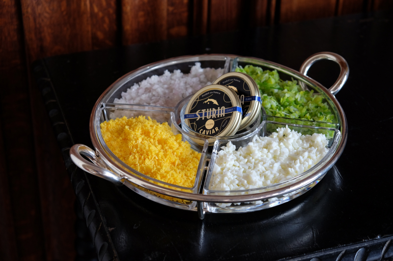 Der Kaviar ist exklusiv abgefüllt für das G.a. Es ist ein Oscietra Kaviar, ein Produkt aus Frankreich, das im Bordeaux produziert wird.