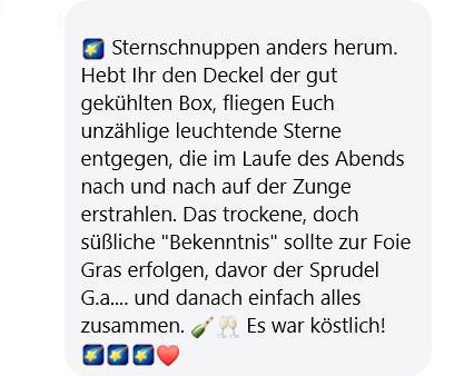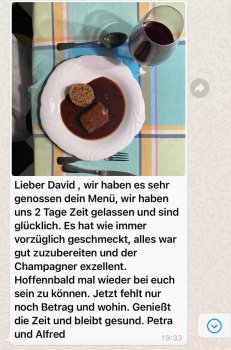 Zur Kür: Die Produkte sind von exzellenter Qualität und so reichhaltig, dass man sich viel Zeit nehmen sollte alles zu genießen. Wer david kennt weiß, das einen eine Mischung aus französischer klassik und Innovation erwartet, es ist toll dies selbst zuhause auf den Tisch zu bringen. Mein Fazit, nehmt euch reichlich Zeit, wir starteten bereits um 17:00 Uhr mit dem obligatorischen GA champagner und endeten etwa um 21:30 mit dem letzten Gang.